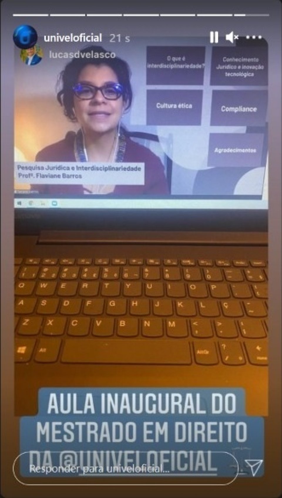 Com o tema "Conversando sobre Pesquisa Jurídica e Interdisciplinaridade", foi realizada a aula inaugural do Mestrado em Direito do Centro Universitário de Cascavel - Univel, ministrada de forma online pela Dra. Flaviane Barros, Coordenadora Adjunta da área do Direito CAPES, professora do PPGD PUC/Minas e UFOP - Universidade Federal de Ouro Preto.