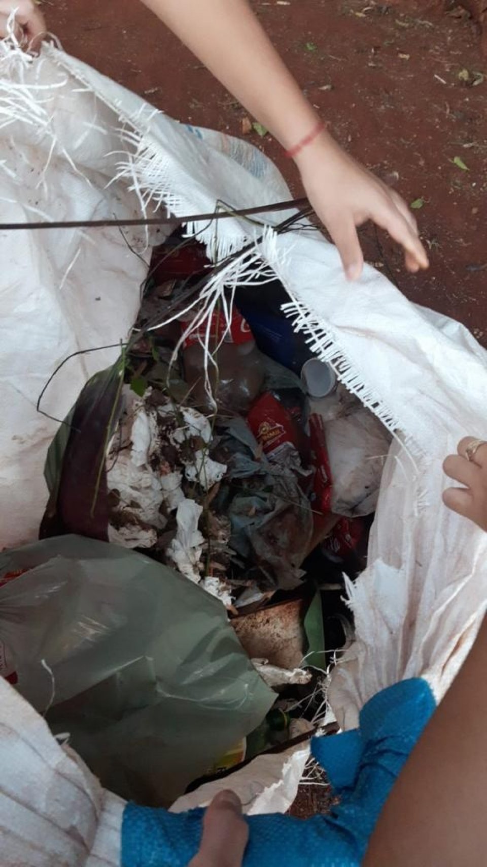 Crianças e jovens do conjunto habitacional Elvira Regazzo de Nova Aurora realizaram a limpeza nas trilhas da mata do bairro na tarde desta segunda-feira (26).