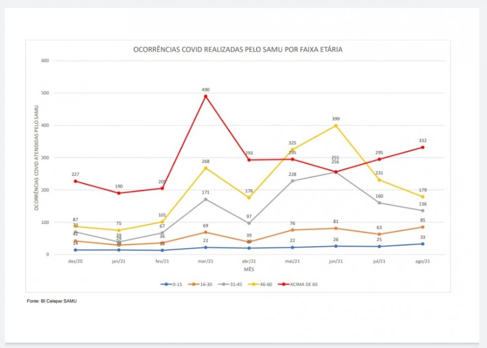 De acordo com o Dr. Rodrigo Nicácio, diretor Médico do Samu Regional, tal situação, o aumento no número de idosos acometidos de covid-19 e diminuição nos registros envolvendo público mais jovem, é decorrente de uma preocupante mudança no cenário da doença: a queda na imunidade daqueles de idade mais avançada.