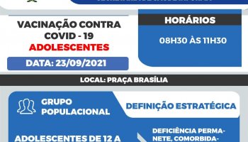 “A partir de agora teremos vacinação de primeira dose para adolescentes, dose um, dose dois e dose três ou dose de reforço tudo na mesma semana. Por isso, peço a comunidade que fiquem atento, procure se informar sobre a vacina e as datas para que não ocorra desencontro de informações. Nesta quinta-feira (23) teremos 300 imunizantes Pfizer à disposição dos adolescentes com 12 anos completos há 17 anos com comorbidades, deficiência permanente, gestantes e puérperas.