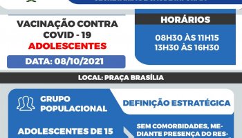 O formulário está disponível no site do município, em forma de pop-up. Além dos documentos descritos acima, os adolescentes precisam estar munidos de CPF, RG, cartão SUS atualizado e carteirinha de vacinação. A imunização acontecerá das 8h às 11h15 e das 13h30 às 16h30 na Praça Brasília.