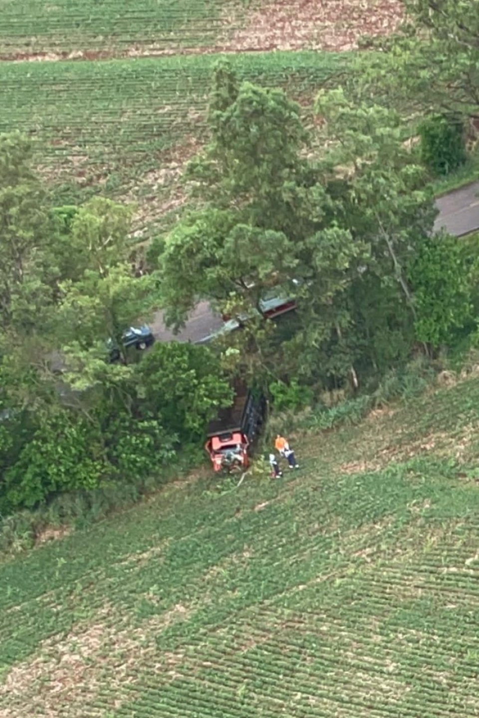 Trata-se de uma colisão contra a traseira de um caminhão seguida queda de barranco de 6 metros.