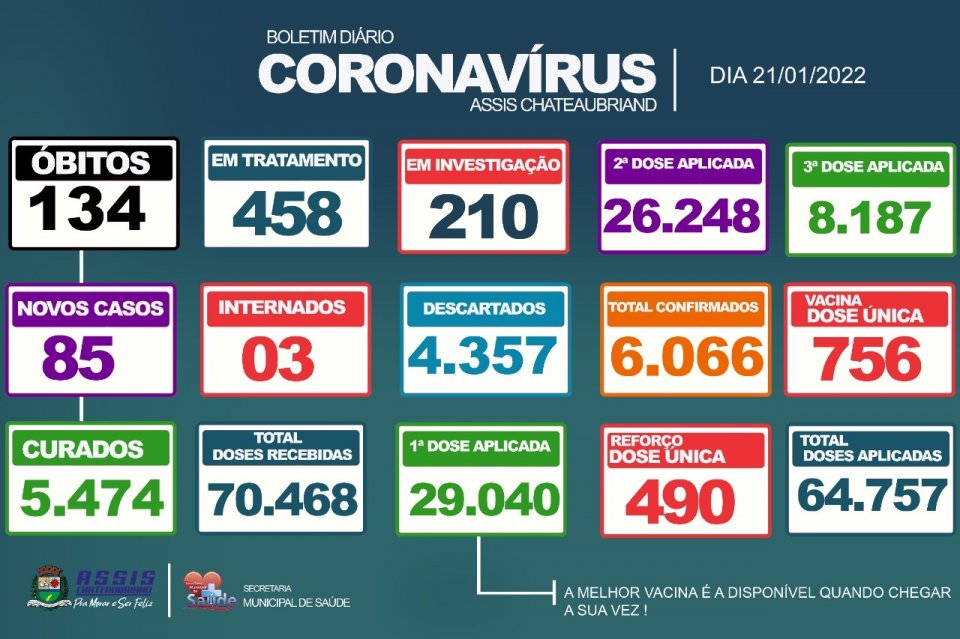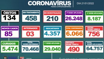 85 novos casos de Covid-19 foram confirmados em Assis Chateaubriand, através do boletim desta sexta-feira (21), totalizando 6.066 pessoas contaminadas.