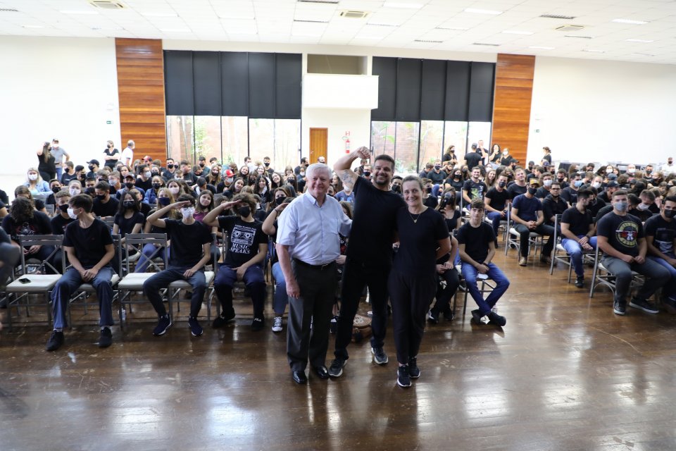 Rodrigo Pimentel, capitão do BOPE (Batalhão de Operações Policiais Especiais), foi o convidado para o encontro mais que especial para 250 jovens das cidades de Formosa do Oeste, Jesuítas, Nova Aurora, Goioerê, Toledo e Cafelândia. “Construindo Tropas de Elite” foi o tema da palestra realizada pelo militar carioca que inspirou um sucesso da bilheteria nacional, Tropa de Elite. “Fiquei muito surpreso com a robustez da Copacol. Parabéns a todos por esta história que vocês construíram e que eu acabei de ver. O Brasil é isso aqui, é alimento para o mundo e depende de vocês. Estou emocionado e queria estar aí, sentado ao lado de vocês, jovens produtores”, diz Pimentel.