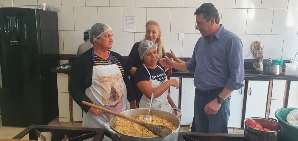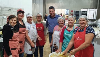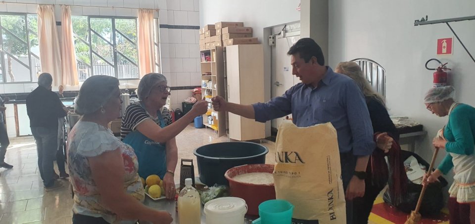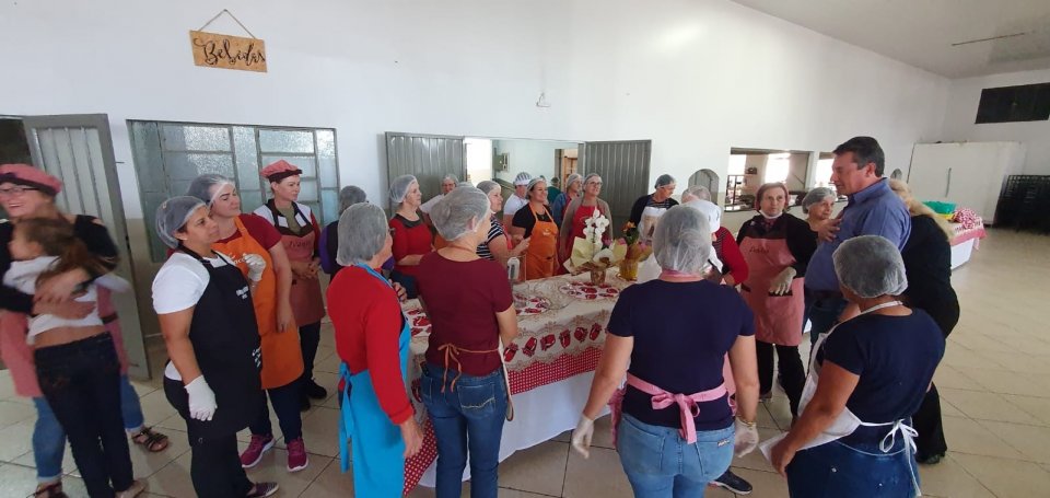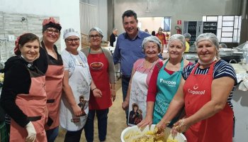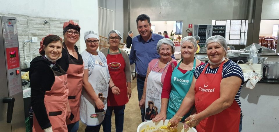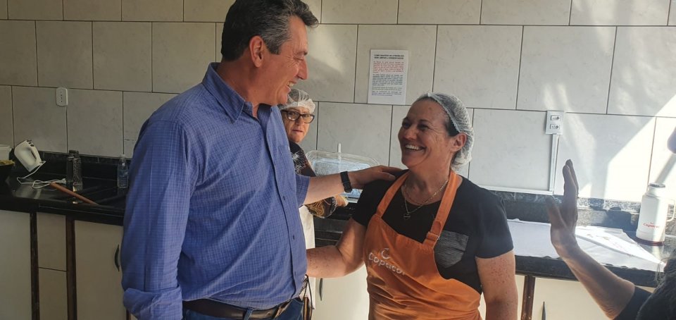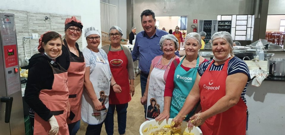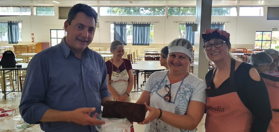 As integrantes do Grupo Feminino da Copacol que estão preparando as deliciosas receitas que serão servidas amanhã dia 6 de agosto, a partir das 16 horas, no tradicional Café Colonial, receberam a visita do Deputado federal Ségio Souza, que parabenizou as mulheres pelo evento que já é considerado um dos maiores do Paraná.