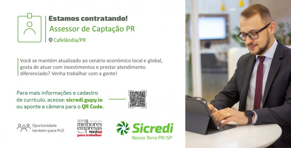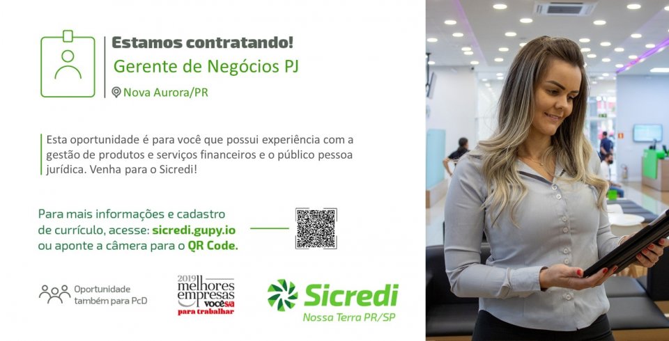 O Sicredi Nossa Terra, está com oportunidades de trabalho para as agências de Cafelândia e Nova Aurora.