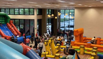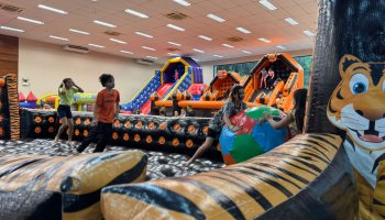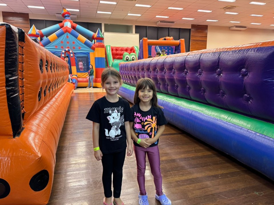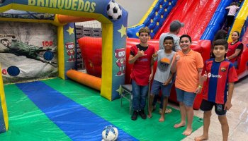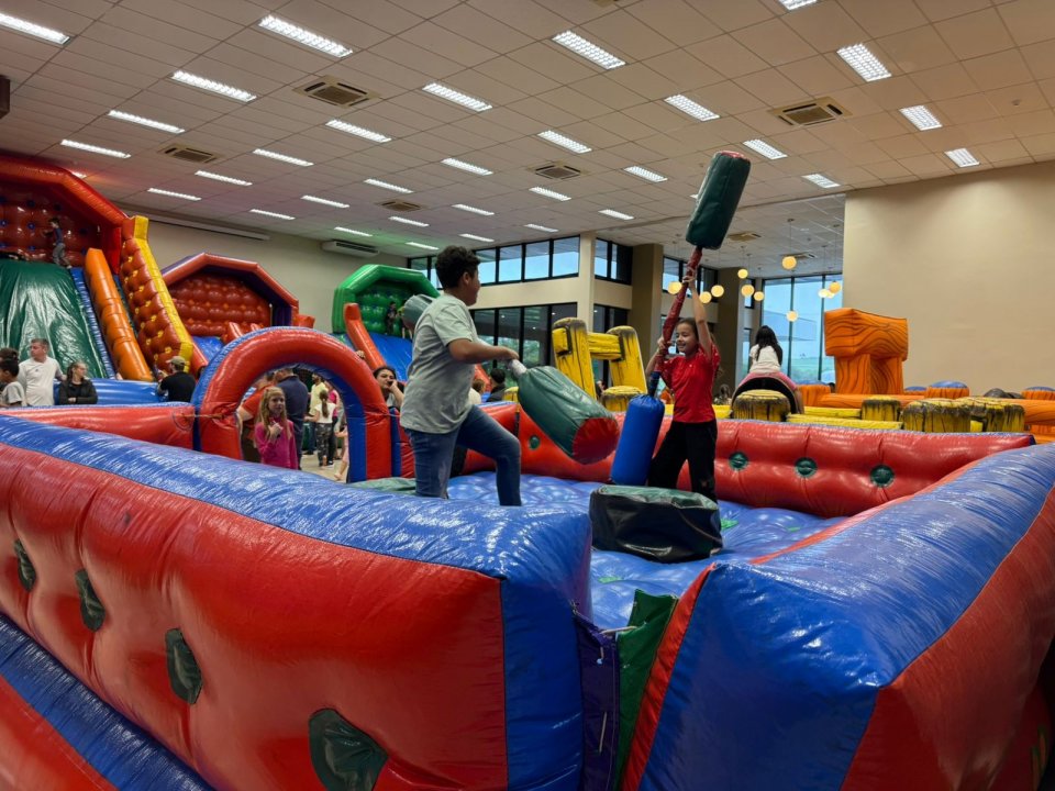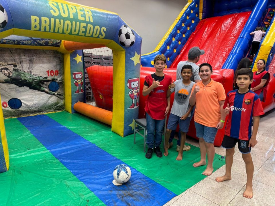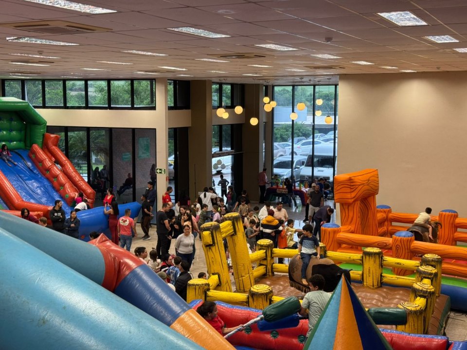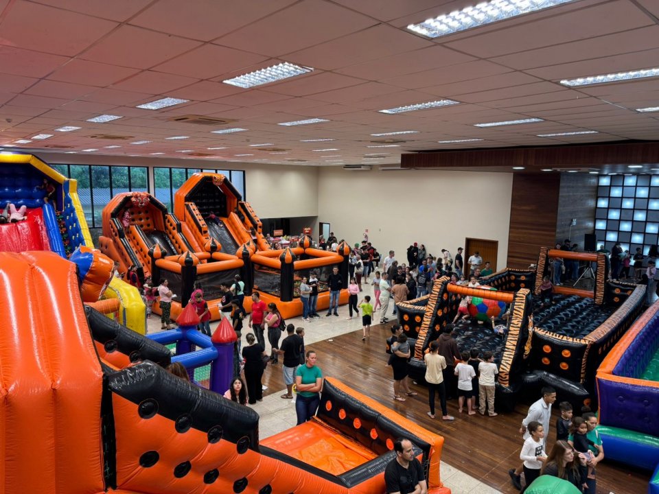 Foram liberados 20 brinquedos infláveis e interativos, garantindo entretenimento para todos os filhos dos associados da AERCOL.