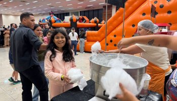 Durante toda a tarde, as crianças puderam aproveitar algodão-doce e pipoca à vontade, além de cachorro-quente, preparado com muito carinho pela equipe organizadora.