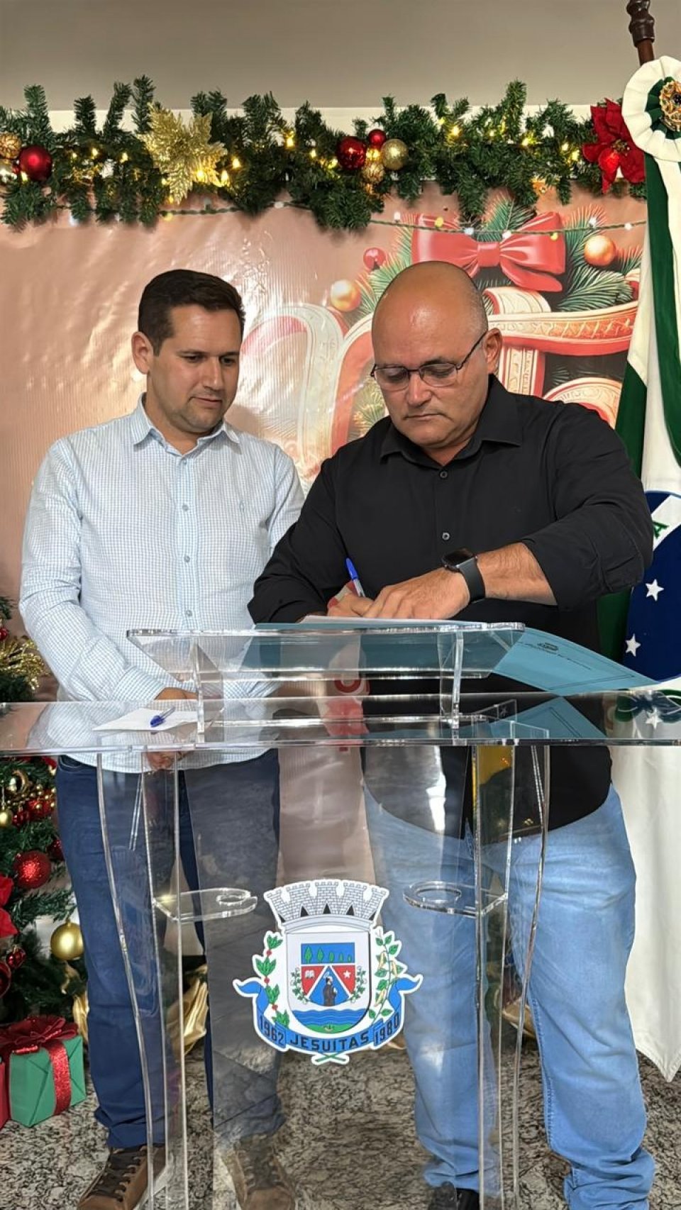 A Prefeitura de Jesuítas realizou, na tarde desta quinta-feira (6), a solenidade de transmissão temporária do cargo de prefeito municipal. O ato oficializou a posse do vice-prefeito Regi Pegoraro como chefe do Executivo, durante o período de 7 a 16 de novembro, em razão de uma viagem internacional do prefeito Edicarlos Grizotto.