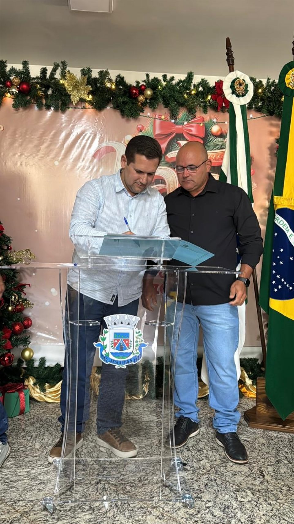 A cerimônia, realizada no Paço Municipal, contou com a presença de autoridades políticas, familiares, servidores e amigos das lideranças municipais.