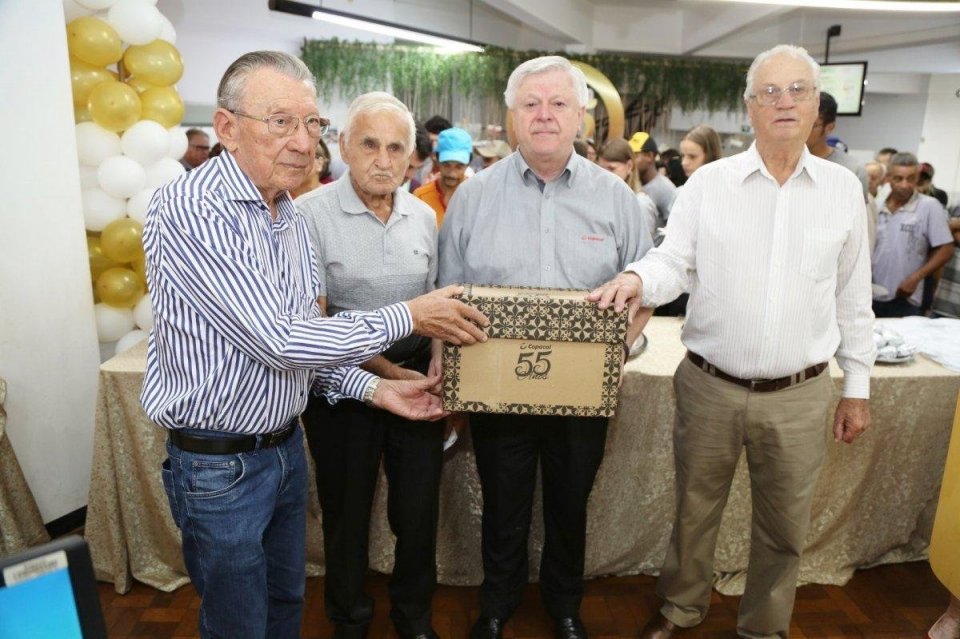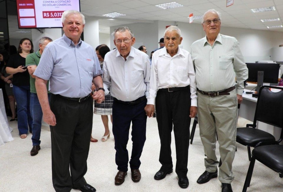 Sua última visita à Copacol foi nas festividades dos 60 anos da Cooperativa, no tradicional corte de bolo, ao lado dos demais sócios-fundadores.