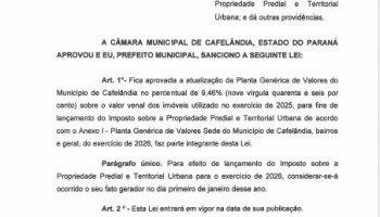 Maioria dos vereadores vetam aumento do IPTU de 9,46% proposto pelo prefeito de Cafelândia