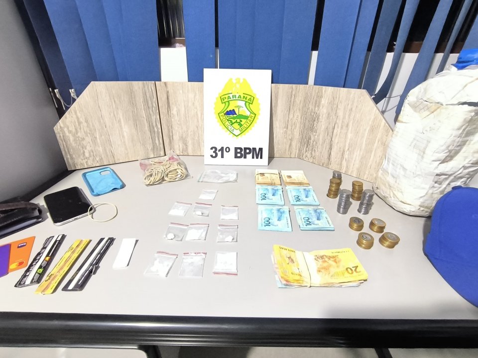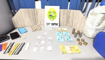 Com apoio de outras equipes policiais, o envolvido foi conduzido, e todo o material apreendido, juntamente com o preso.