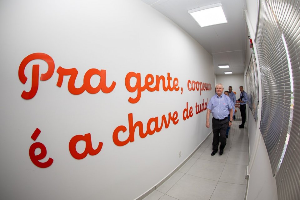 Com uma área total de 78 mil metros quadrados e 35 mil metros quadrados de construção, a nova estrutura traz soluções sustentáveis integradas ao coração da logística da Cooperativa. Entre os destaques estão sistemas de tratamento e reuso de 100% da água com capacidade de até 100 mil litros por dia, uma usina de energia fotovoltaica com 180 placas para abastecer equipamentos e instalações, além de pontos de coleta e tratamento de resíduos para logística reversa — reforçando a cultura de cuidado com o meio ambiente.