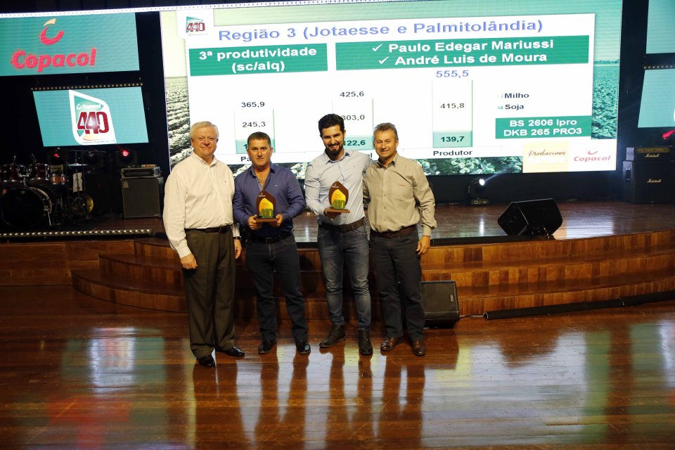 Em primeiro lugar geral ficou o produtor Evandro Carlos Schreiber de Tupãssi, que destacou a importância de participar do programa com o objetivo de elevar a produtividade e a rentabilidade da sua propriedade. “Agrademos a Copacol e toda a equipe técnica pela oportunidade de participar deste projeto e consequentemente, aumentar a produtividade nas safras de milho e da soja”, afirma Evandro.
