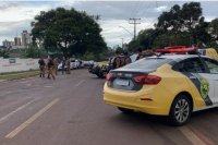 Os manifestantes que estavam em frente ao 33° Batalhão do Exército de Cascavel deixaram o local pacificamente...