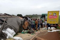 Caminhão tombou em cima de carro em grave acidente na BR 369 em Corbélia, na manhã de segunda-feira (12).A...