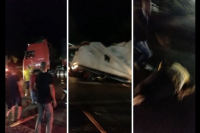 Nossa equipe de reportagem recebeu imagens de um caminhoneiro destruindo barracas e atropelando manifestantes...