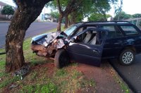 Um motorista perder o controle do seu veículo uma Parati e acabou colidindo contra uma árvore nesta madrugada...