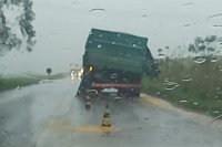 Um caminhão acabou abrindo a tampa traseira e acabou perdendo a carga de cereais próximo a Ponte do...